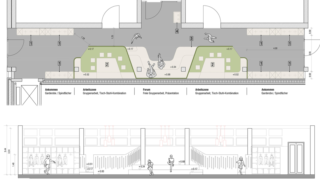 Daher sollen brandschutztechnischen Nutzungseinheiten (Cluster) der Schule so geändert werden, damit bisher nicht nutzbare Raumbereiche als Nutzfläche aktiviert werden können. Diese Raumbereiche werden anschließend um baukonstruktive Einbauten ergänzt, sodass eine Vielzahl unterschiedlicher Unterrichtsformen im Schulgebäude angeboten werden können. Im Zuge dieser Maßnahme wird die Haustechnik der Schule ebenso vollständig modernisiert und defekte Oberfläche instandgesetzt.